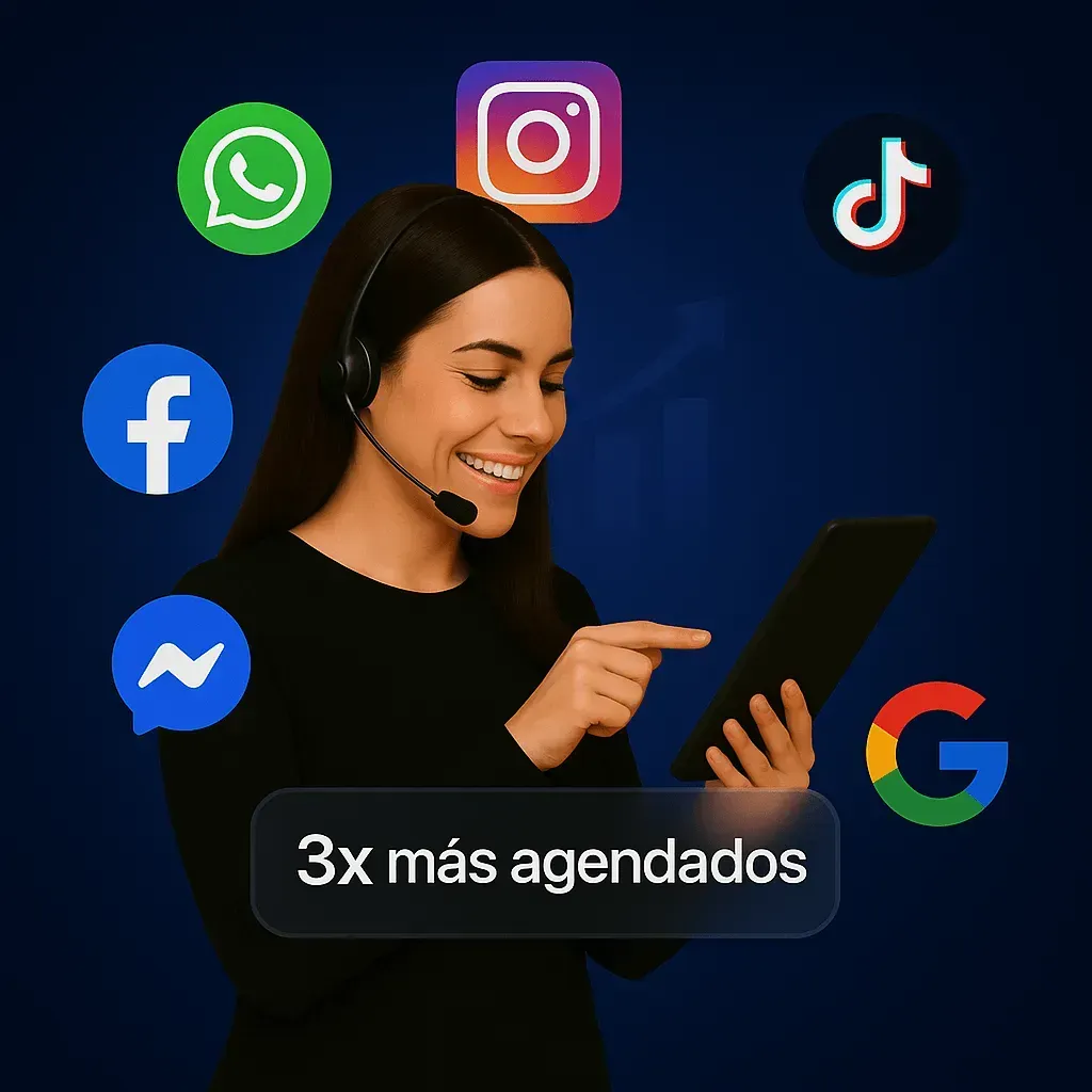 Atiende 24/7 desde WhatsApp, IG, FB, TikTok, Google y Web